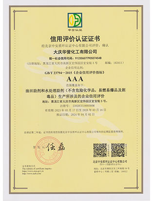 大慶華營化工有限公司成立于2006年7月10日,注冊資金3300萬元,公司類型為有限責(zé)任公司。位于大慶高新技術(shù)產(chǎn)業(yè)開發(fā)區(qū)宏偉園區(qū),是一家集油田助劑產(chǎn)品的研發(fā)、生產(chǎn)、銷售和技術(shù)服務(wù)為一體的現(xiàn)代化高新技術(shù)企業(yè)。公司注重科技創(chuàng)新,公司擁有18項(xiàng)自主知識產(chǎn)權(quán)。企業(yè)承擔(dān)過國家火炬計(jì)劃重點(diǎn)項(xiàng)目、國家科技型中小企業(yè)創(chuàng)新項(xiàng)目等,2011年被科技部火炬高新技術(shù)產(chǎn)業(yè)開發(fā)中心評為國家火炬計(jì)劃重點(diǎn)高新技術(shù)企業(yè)。公司十余種產(chǎn)品獲得中國石油天然氣集團(tuán)公司產(chǎn)品質(zhì)量認(rèn)可證書,其中粘穩(wěn)型驅(qū)油劑獲國家火炬計(jì)劃重點(diǎn)項(xiàng)目證書。公司憑借多年對大慶油田及周邊油田地質(zhì)情況的研究,可針對各油田地層特點(diǎn)調(diào)整產(chǎn)品的配方,更好地發(fā)揮各類油田助劑的性能。